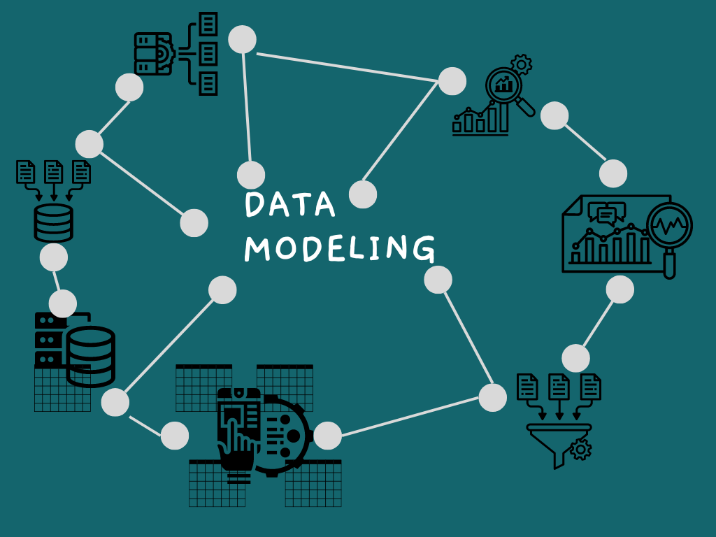 Data modeling is the process of visually representing data structures, relationships, and rules within a system. It acts as a blueprint for how data is stored, accessed, and managed, ensuring consistency, efficiency, and clarity in database design.